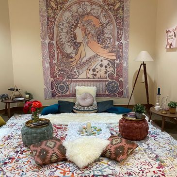 We gently guide you through a deep meditation to ground yourself and reset, manifest or heal. Meditation is not about having a completely clear mind of all thoughts. Meditation doesn't have to be intimidating. It just has to be done. Our studio is a sacred safe space perfect for meditation.